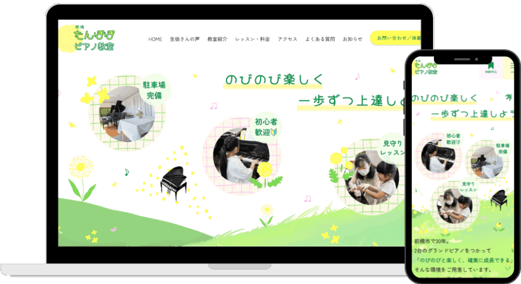 安定した教室運営をするには、先生も生徒さんも、みんなが幸せになれる《本質的なマーケティング》が必要です。ホームページの制作〜運営については、わたしたちが分かりやすくサポートします。一緒にがんばっていきましょう!